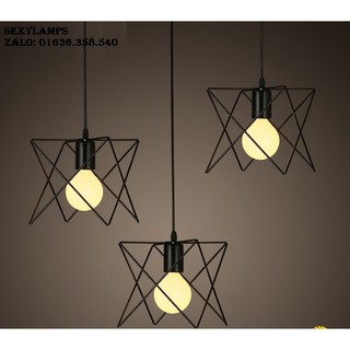 Đèn Thả Trang Trí Rọ Sắt, Hình Khối nhiều dáng. Tặng Bóng Led Thủy Tinh