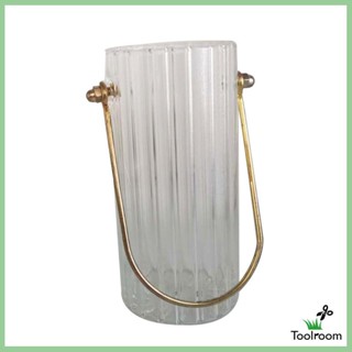 Bình Hoa Thủy Tinh Trong Suốt Hình Trụ Với Tay Cầm Kim Loại