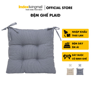 Đệm vuông ngồi bệt, gối lót ghế, tựa lưng sofa có dây buộc PLAID nệm bọc vải polyester màu be, kích thước 45x45x9cm