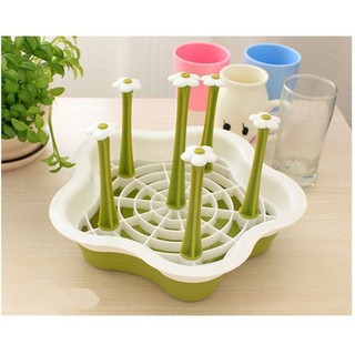 Khay hoa úp cốc chén 2 lớp Việt Nhật có 6 nhánh móc ly tiện dụng.