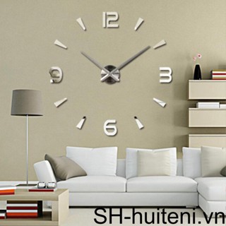 Đồng Hồ Treo Tường 3D Tự Dính Chạy Bằng Pin Thời Trang Sành Điệu Màu Bạc
