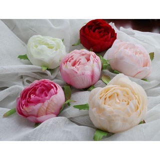 Đầu bông hồng trà lụa trang trí, trà mẫu đơn trang trí đầu bông 9cm