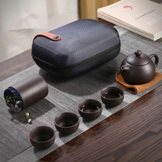 Bộ Ấm Trà Bằng Gốm Tự Nhiên 4 Cốc Và Hũ Đựng Trà Kèm Túi Bảo Vệ Tiện Lợi