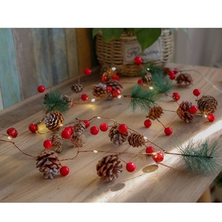 Dây đèn LED 2M 20 bóng hình quả thông đỏ trang trí Giáng Sinh/ năm mới