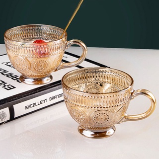 Cốc Thủy Tinh Uống Sữa/Cà Phê In Nổi Họa Tiết Hoa Hướng Dương Kèm Muỗng Chịu Nhiệt Cao Tiện Dụng