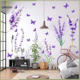 Set 2 Tấm Sticker Dán Tường Họa Tiết Hoa Oải Hương Màu Tím Trang Trí Nội Thất