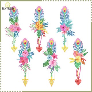 Bộ 6 Kẹp Sách Tranh Đính Đá Tự Làm Họa Tiết Lông Vũ Nhiều Màu Sắc Dành Cho Người Mới Bắt Đầu
