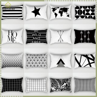 Vỏ Bọc Đệm Gối Sofa Bằng Vải Nhung Đào Họa Tiết Hình Học Sọc Trắng Đen Hiện Đại Mềm Mại