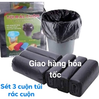Sét 3 cuộn túi bóng đen đủ kích thước lựa chọn, túi đóng hàng, túi nilon, túi đựng rác tự phân hủy TAHUFA, Bao rác đen.