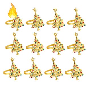 Bộ 12 Vòng Khóa Khăn Ăn Hình Cây Thông Giáng Sinh Đính Đá Trang Trí Bàn Ăn Tiệc Cưới