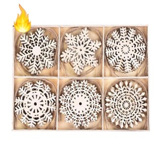 Hộp 24 Miếng Gỗ Hình Hoa Tuyết Trang Trí Cây Thông Noel