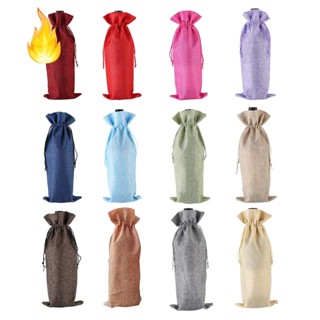 Set 12 Vỏ Bọc Chai Rượu Bằng Vải Bố Trang Trí Tiệc Cưới / Giáng Sinh