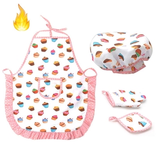 Set tạp dề + mũ + găng tay + tấm lót nồi cho trẻ em học làm đầu bếp