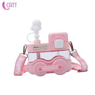Bình Nước Thể Thao Hình Tàu Lửa Hoạt Hình Có Ống Hút Và Dây Đeo Dễ Thương Cho Trẻ Em
