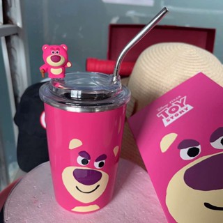 Bình Nước Giữ Nhiệt Hình Gấu Và Dâu Tây Hoạt Hình Dễ Thương 401-500ML
