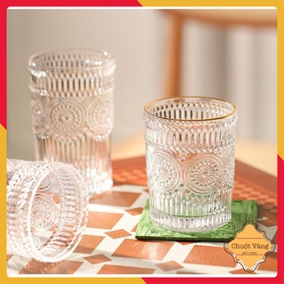 Ly Cốc Thủy Tinh Uống Nước Chịu Nhiệt Phong Cách Châu Âu Viền Vàng Sang Trọng 300ml 350ml