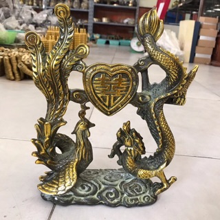 Tượng Gà chữ Phúc cao 19cm Vật Phẩm Phong Thủy bằng đồng