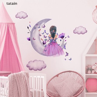 Giấy Dán Tường Bằng Vinyl Hình Cô Gái Và Bướm / Mặt Trăng / Đám Mây Trang Trí Nhà Cửa