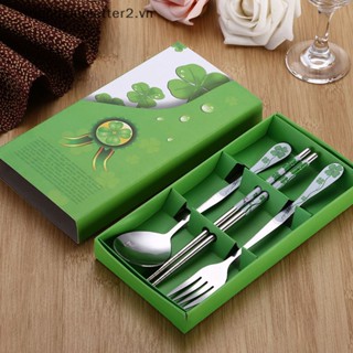 Bộ 3 Dụng Cụ Ăn Bằng Thép Không Gỉ Màu Xanh Dương Và Trắng Kèm Hộp Đựng