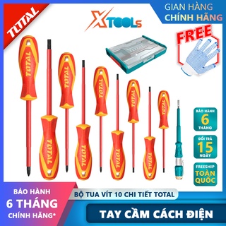 Bộ tuốt nơ vít cách điện 10 chi tiết TOTAL THKTV02S101 | Bộ 10 tua vít cách điện 9 tua vít SL3.0x75mm, SL4.0x100mm, SL5.
