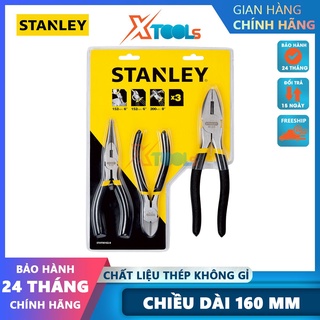 Bộ 3 kìm cắt 6", kìm điện 8", kìm nhọn 6" Stanley STHT90162-8 thép CR-V chống rỉ sét, mài mòn kềm cắt-CHÍNH HÃNG-XTOOLS