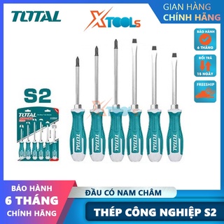 Bộ 6 tua vít đóng xuyên TOTAL THGSS2606 thép công nghiệp S2 cứng chắc, đầu bake và dẹp 100-200 - CHÍNH HÃNG - XTOOLS