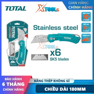 Dao rọc xếp TOTAL THT5136288 180mm, dao rọc giấy kích thước lưỡi 61x19mm, lưỡi dao SK5, kèm 6 lưỡi cắt-CHÍNH HÃNG-XTOOLS
