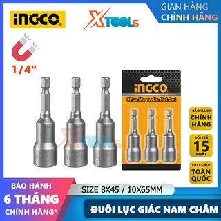 Bộ 3 đầu bắn tôn từ tính đuôi lục giác 1/4" Ingco 8x45mm,10x65mm thép cr-v, mũi bắn vít tôn nam châm[CHÍNH HÃNG][XTOOLs]