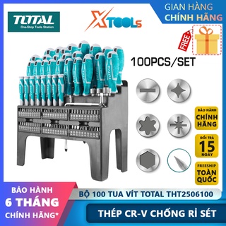 Bộ 100 tua vít TOTAL THT2506100 thép Cr-v cứng chống tòe, 6 kiểu đầu vít, đầy đủ kích thước [CHÍNH HÃNG][XTOOLS]