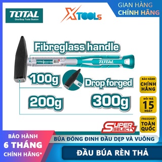 Búa đóng đinh đầu dẹp và vuông TOTAL đầu búa nặng 100-300g, thép carbon 45 rèn thả cứng cáp độ bền cao-CHÍNH HÃNG-XTOOLS