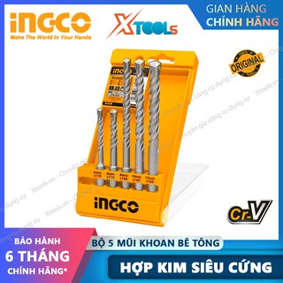 Bộ mũi khoan bê tông đuôi gài 5 chi tiết INGCO AKD2052 6-12mm hợp kim siêu cứng, mũi khoan tường, gạch đá đa chức năng.
