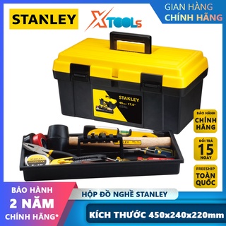 Hộp dụng cụ nhựa STANLEY | Thùng đồ nghề có khay đựng phụ kiện, có chốt khóa bằng nhựa [chính hãng][xtools]