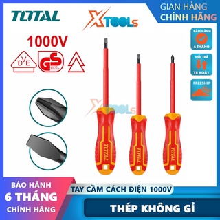Bộ 3 tua vít cách điện TOTAL THTIS036, gồm SL4.0×100, SL5,5×125, PH2×100, tay cầm thiết kế mới -CHÍNH HÃNG-XTOOLS