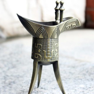(UP) (30k) Ly rượu mạ đồng giả cổ tần thủy hoàng trưng bày nhà cửa đẹp