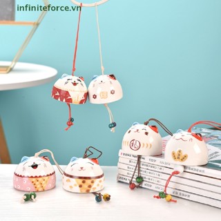 Chuông Gió Bằng Gốm Hình Mèo May Mắn Phong Cách Nhật Bản