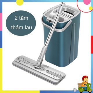 Cây Lau Nhà, Bộ Chổi Lau Nhà Tự Vắt Thông Minh 2 Ngăn 360 Độ Tặng Kèm 2 Tấm Thảm Lau, Lắp Ráp Đơn Giản Tiện Lợi