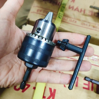 đầu kẹp mũi khoan, đầu mang ranh 13mm, loại tay khóa, kèm chuôi lục giác (SS1869)