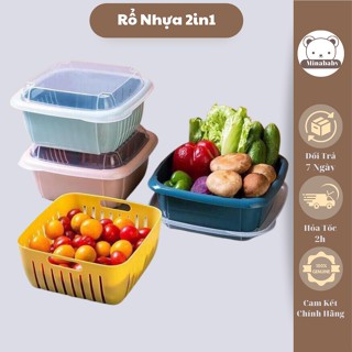 Rổ Nhựa Kèm Chậu 2 Trong 1 Có Nắp Đậy, Rổ Nhựa Kèm Thau Đựng 2in1 Minababyvn
