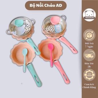 Nồi Chảo Ăn Dặm Kèm Xửng Hấp, Bộ Nồi Chảo Đá Fashion Cho Bé Ăn Dặm Chịu Nhiệt Cao Tặng Kèm Quà