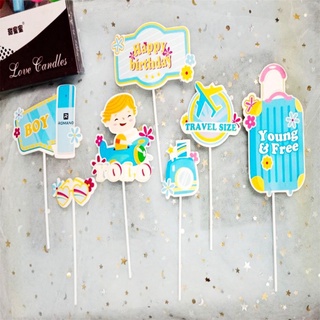 trang trí bánh kem [FREESHIP❤️] set cắm giấy bé trai bé gái du lịch