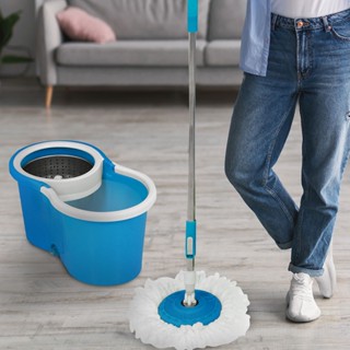 HomeBase Me Living Bộ cây lau nhà quay bằng thép không gỉ TAIKU W45xH25xD23cm màu xanh da trời