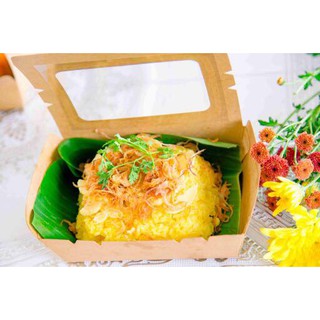 200 hộp giấy Kraft nắp gập có mặt kính trong đựng salad, thức ăn các loại size 700ml, 900ml, 1200ml hoặc 1600ml