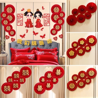 Bộ 6 quạt giấy màu đỏ dùng trang trí tiệc cưới