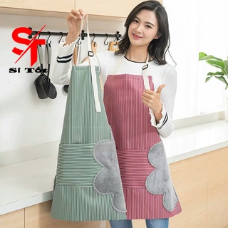 Tạp Dề Chống Thấm Nước Kẻ Hoa Có Khăn Lau Tay Bên Hông