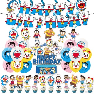 Set Bong Bóng + Thẻ Giấy In Hình Doraemon Trang Trí Bánh Sinh Nhật