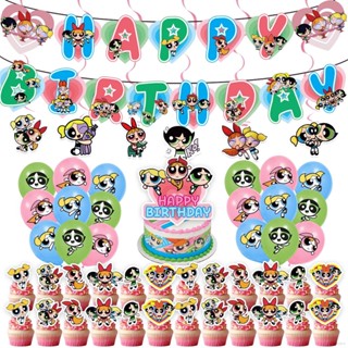 Set Bong Bóng + Que Cắm Trang Trí Tiệc Sinh Nhật Chủ Đề Powerpuff Girls