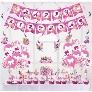 Bộ Phụ Kiện Trang Trí Bánh Sinh Nhật Cho Bé Hình Búp Bê Barbie