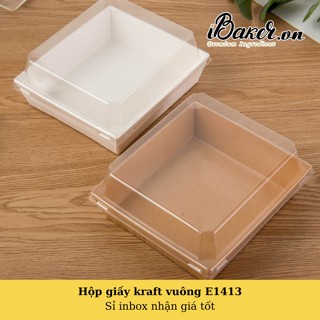 [Set 50] Hộp giấy kraft vuông E1413 - Hộp giấy nắp trong đựng bánh tiramisu/ bánh bông lan/ bánh su kem