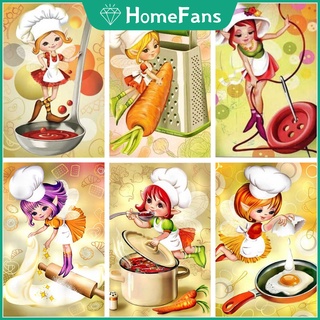 Bộ Tranh Đính Đá 5D Họa Tiết Cô Gái & Đầu Bếp Hoạt Hình Độc Đáo DIY Dùng Trang Trí Nhà Cửa