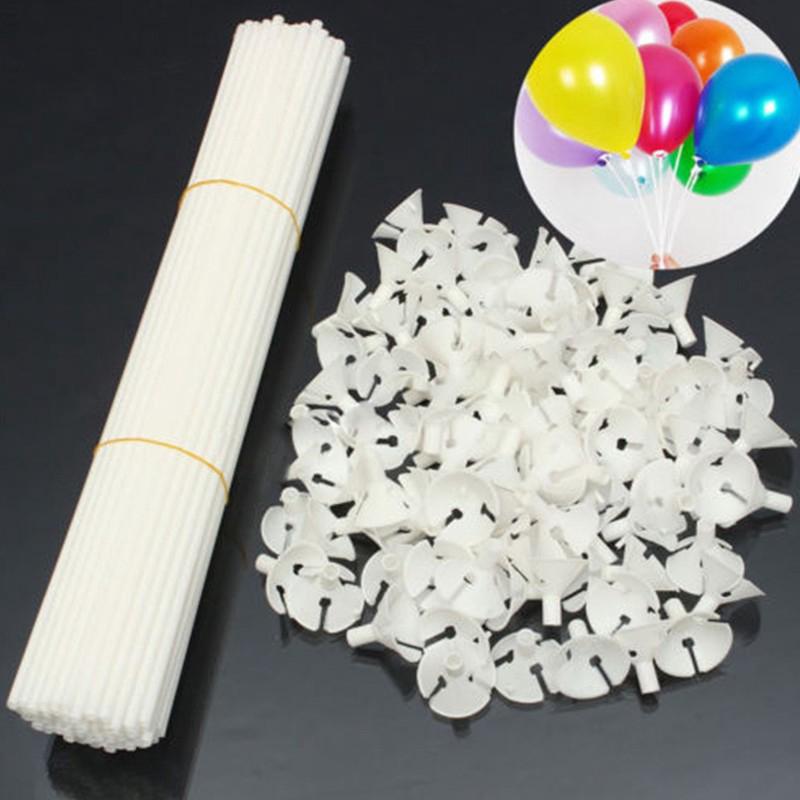Bộ 100 cái que và đế cắm bong bóng trang trí tiệc bằng nhựa màu trắng